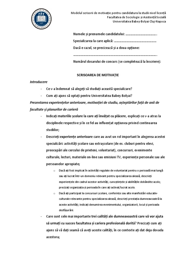 Scrisoare De Motivatie Pentru Facultate Model Scrisoare Blog - Gambaran