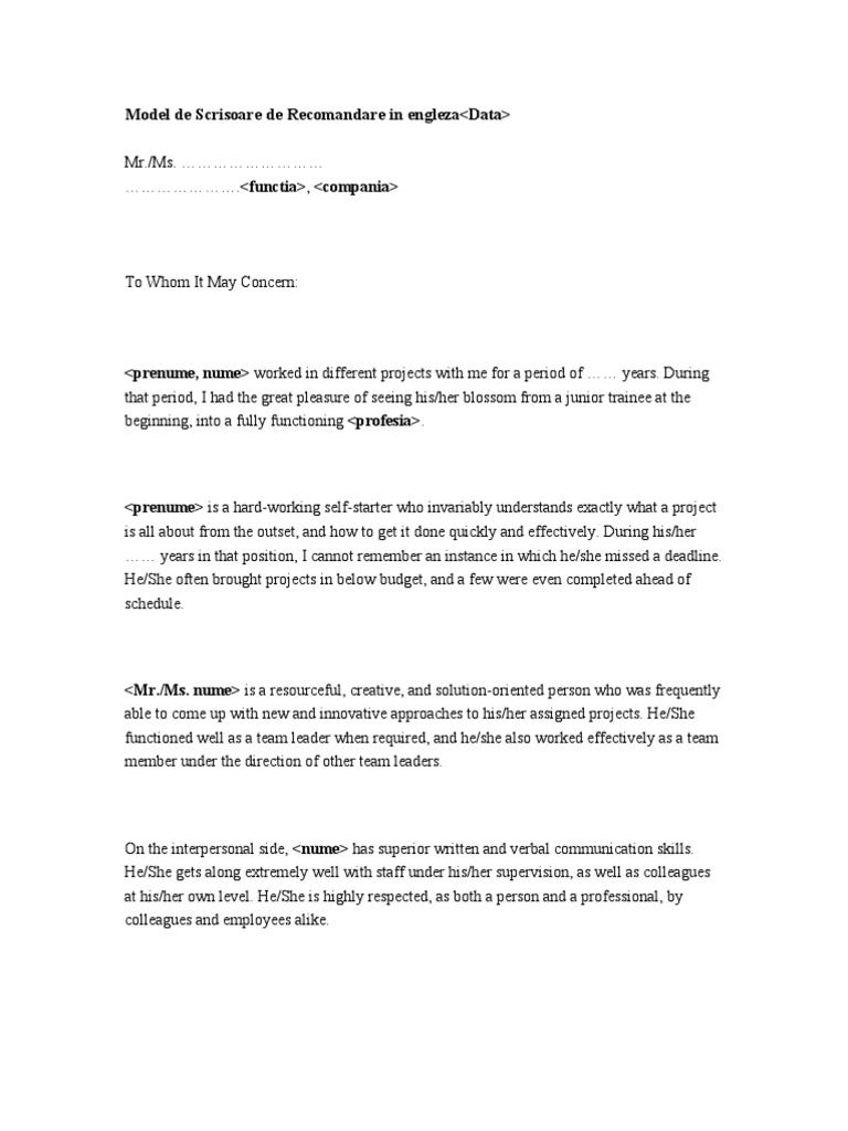 legislatiamuncii.manager.ro Model Scrisoare De Recomandare Facultate