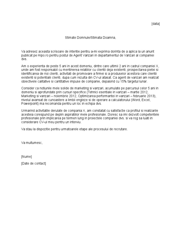 Model Scrisoare De Intentie Agent Vanzari - Scrisoare Blog